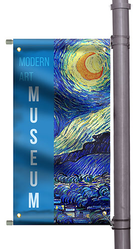 Light Pole banners have high visual impact and citywide exposure. Take your message to the streets with these Double Sided graphics. Available in 18, 24 or 30 inches wide and up to 96 inches tall. We print in full color on your choice of 13 oz or 16 oz matte vinyl. Finished banners include 2" inch pole pockets and a grommet at each corner seam to keep your product in place.