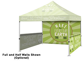 Canopy is printed and sewn Weather Resistant Tent Polyester. Print your brand message on each of the four peaks and valance panels. Our large format full color capabilities take artwork seam to seam unlike competitor tents that rely on small vinyl applications.